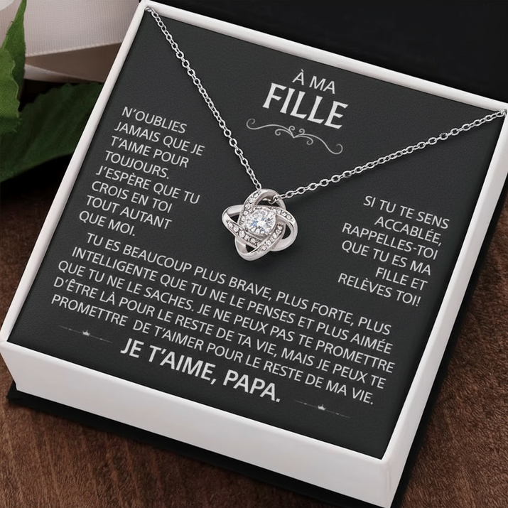 Depuis qu’elle est petite, je lui dis qu’elle est ma plus belle histoire. Ce collier est devenu notre secret, notre promesse, un bout de mon cœur qu’elle gardera toujours sur elle.